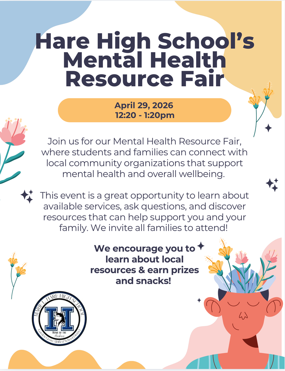 Our school counselor, mental health specialist, and social worker are proud to invite you to our Mental Health Resource Fair on Wednesday, April 29, 2026.